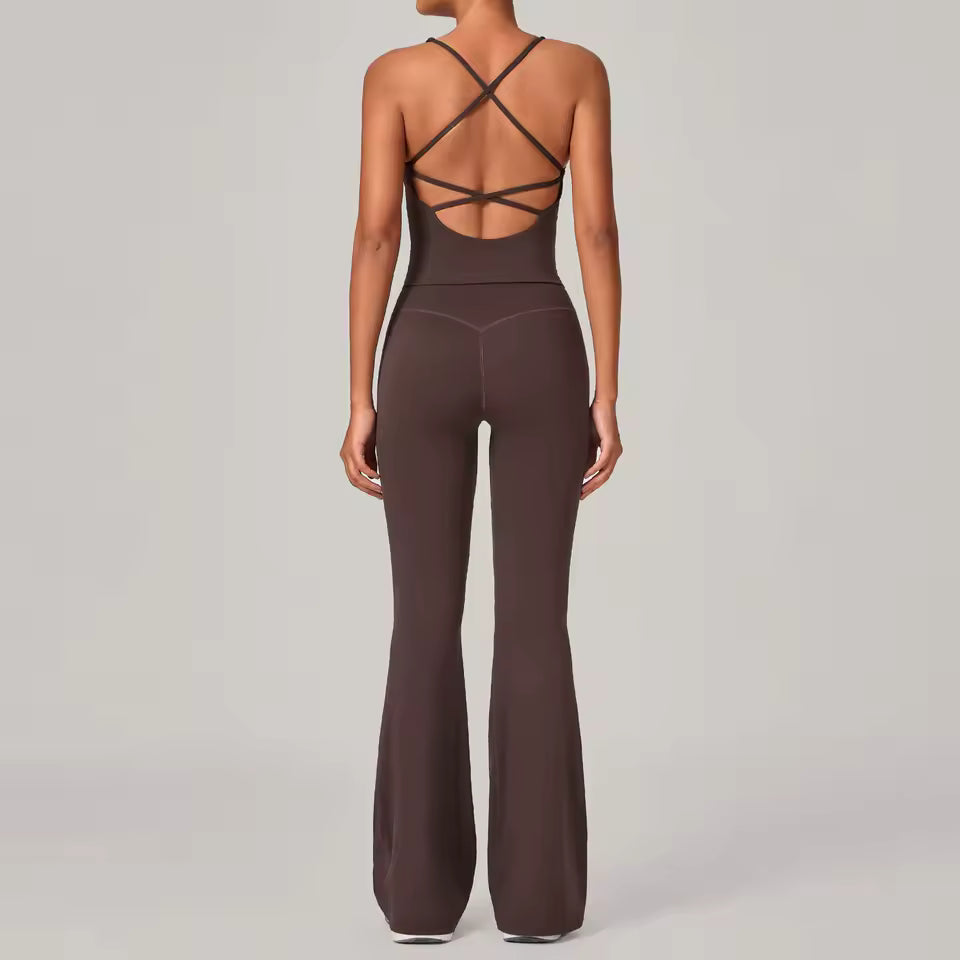O Conjunto Efeito BUUM Soft Motion Flare Costas Cruzadas foi desenvolvido para oferecer conforto, elasticidade e um visual moderno que valoriza as curvas. Com calça flare de cintura alta e regata esportiva leve, ele combina estilo fitness e liberdade de movimento para treinos ou looks casuais.