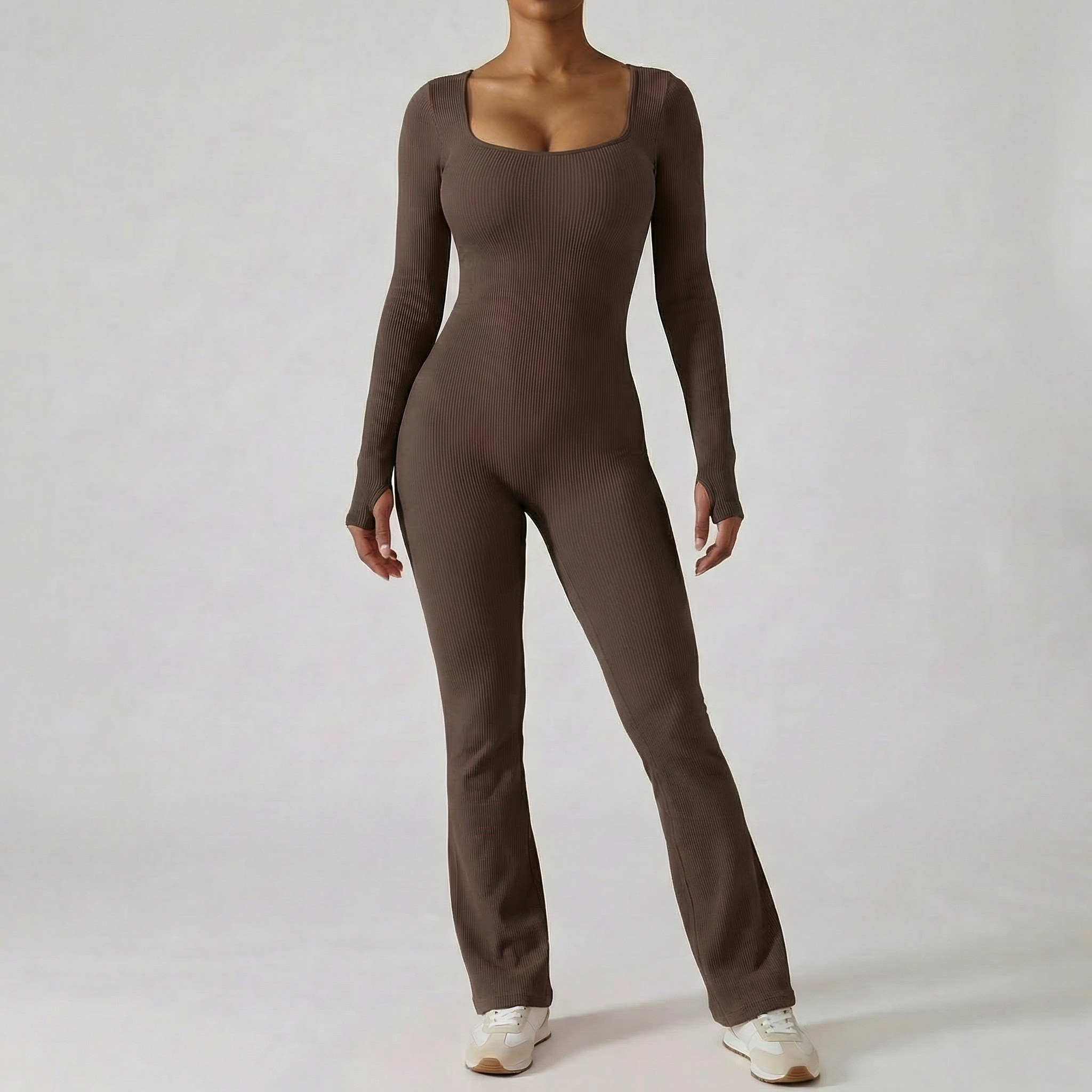 O Macacão Manga Longa Decote Quadrado Flare Soft Motion Buum é a peça que combina elegância e conforto para você usar do treino ao dia a dia sem abrir mão do estilo.